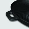 SOGA 2X 35cm Round Ribbed Cast Iron Frying Pan Skillet Steak Sizzle Platter with Handle – – ZPai004X2