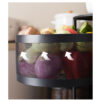 - With ROTATING BASKET DESIGN, that can be rotated left and right, placing and taking items more convenient and direct. The basket breathable pattern design ensures ventilation (keeps fruits and vegetables fresh), while you can place a thing on top of the shelf.