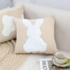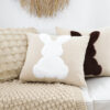 - Add a playful touch to your home with this Throw Pillow, featuring a charming soft White Rabbit design on a light tan square cushion. This decorative pillow combines cozy comfort with a delightful aesthetic, making it the perfect accent piece for your living room, bedroom, or even a cozy reading book.