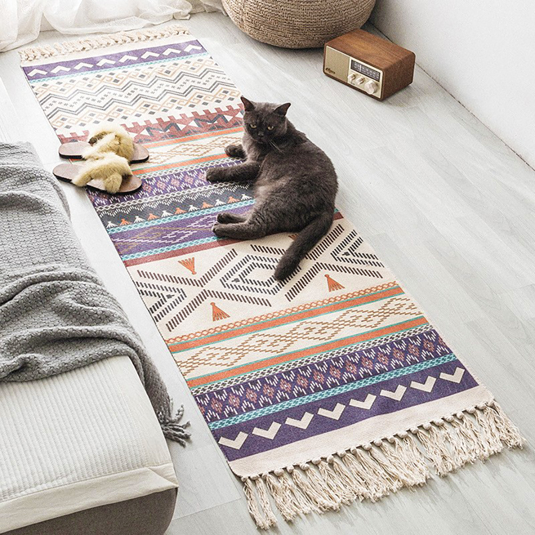 • Infuse your space with a vibrant pop of color by displaying this rug. It features a vivid striped motif with coordinating tassels to complete the look. Its versatile size makes it perfect for use in your entryway, beside your bed, or in your getting-ready space.