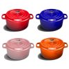 • It is lidded, comes in a striking bright orange/pink/ red in color and has a lovely matte black enameled interior.