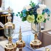 SOGA 2X Clear Glass Flower Vase with Lid and White Flower Filler Vase Bronze Set