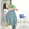 - 2X SOGA Green Tassel Fringe Knitting Blanket