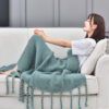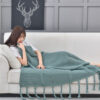 SOGA 2X Green Tassel Fringe Knitting Blanket Warm Cozy Woven Cover Couch Bed Sofa Home Decor – – Blanket928X2
