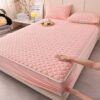 SOGA 2X Pink 183cm Wide Mattress Cover Thick Quilted Fleece Stretchable Clover Design Bed Spread Sheet Protector with Pillow Covers – – BCover7008X2