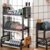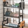 SOGA 3 Tier 62cm Steel Black Kitchen Countertop Drying Rack Dish Plate Cutlery Cutting Board Holder Dish Drainer Kitchen Organiser – – KitchenXY049AA