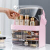 SOGA 3 Tier Pink Countertop Makeup Cosmetic Storage Organiser Skincare Holder Jewelry Storage Box with Handle – – BathC104