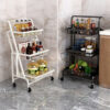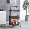 SOGA 3 Tier Steel Black Adjustable Kitchen Cart Multi-Functional Shelves Portable Storage Organizer with Wheels – – KitchenXY032