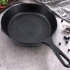 SOGA 30cm Round Cast Iron Frying Pan Skillet Steak Sizzle Platter with Helper Handle – – ZPai008