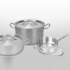 - Classic tri-ply clad construction with 18/10 stainless steel interior and exterior with an aluminum core for maximum durability and fast, even heat distribution