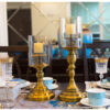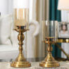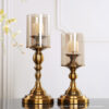 - Elegant column electroplated with French Gold colour creates an eye-catching table centrepiece. Maintains an elegant, tasteful and textured lustre with exquisite workmanship. Glass cover helps your candle resist the wind while providing a warm atmosphere.