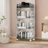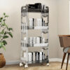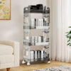 - Efficiently organize and display your books and cosmetics with the Clear 4 Tier Bookshelf & Cosmetic Storage Organizer Trolley Rack, designed for functionality and modern appeal.