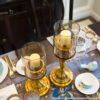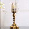 - Elegant column electroplated with French Gold colour creates an eye-catching table centrepiece. Maintains an elegant, tasteful and textured lustre with exquisite workmanship. Glass cover helps your candle resist the wind while providing a warm atmosphere.