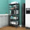 SOGA 5 Tier Steel Black Foldable Display Stand Multi-Functional Shelves Portable Storage Organizer with Wheels – – KitchenXY030BLK