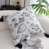 SOGA 50cm Throw Pillow Black and White Elegant Floral Print with Tassel Accents Home Decor – – FrenchCushion341