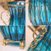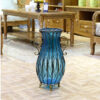 SOGA 51cm Blue Glass Tall Floor Vase with 12pcs Pink Artificial Fake Flower Set – – Vase4880BluewPinkF12
