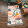 - Infuse your space with a vibrant pop of color by displaying this rug. It features a vivid striped motif with coordinating tassels to complete the look. Its versatile size makes it perfect for use in your entryway, beside your bed, or in your getting-ready space.