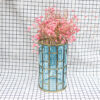 SOGA Blue Colored European Glass Cylinder Flower Vase with Gold Metal Pattern – – HO-VaseYG3264
