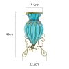 SOGA Blue Colored Glass Floor Flower Vase with 8 Bunch 3 Heads Artificial Fake Silk Hibiscus Home Decor Set – – YG2311B-F003