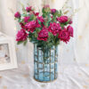 SOGA Blue Glass Cylinder Flower Vase with 8 Bunch 5 Heads Artificial Fake Silk Rose Home Decor Set – – YG3264-F008