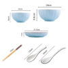 - 1X SOGA 9 pcs Blue Ceramic Dinnerware Set (4 Bowls, 4 Plates, 4 Spoons, 4 Pairs of Chopsticks, 1 Soup Bowl, 1 Big Soup Spoon)