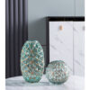 SOGA Green Colored Diamond Cut Glass Flower Vase Round Jar Home Decor with Gold Accent Large and Medium Set – – GVaseGreen