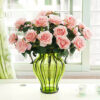 SOGA Green Colored Glass Flower Vase with 4 Bunch 9 Heads Artificial Fake Silk Rose Home Decor Set – – YG8054-F001