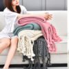 - ELEGANT DECOR a classic waffle weave wool-like knitted blanket with long twisted fringe for a stylish beautiful finish. This throw blanket is more than a blanket. It can also be a scarf or a shawl in all seasons.