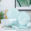 - 1X SOGA 8 pcs Light Blue Ceramic Dinnerware Set (4 Bowls, 4 Plates, 4 Spoons, 4 Pairs of Chopsticks)