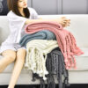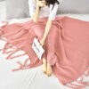 - 1X SOGA Pink Tassel Fringe Knitting Blanket