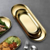 - Enhance your dining experience with the Song Silver Nordic Oval Plate Set. This exquisite set includes three beautifully crafted plates in small, medium, and large sizes, perfect for any occasion. The elegant gold finish adds a touch of sophistication to your table setting, making it ideal for both everyday use and special events. Designed with a Nordic aesthetic, these plates combine functionality and style, becoming a kitchen essential that elevates your culinary presentations.