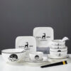 SOGA White Antler Printed Ceramic Dinnerware Set Crockery Soup Bowl Plate Server Kitchen Home Decor Set of 13 – – BowlG771
